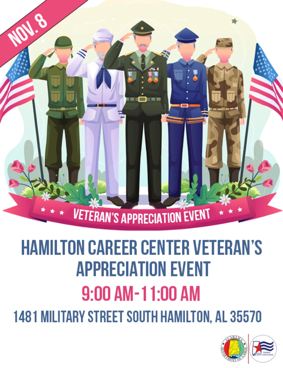 • The Hamilton Career Center is Hosting a Veteran Appreciation Event at the Hamilton Career Center in the Marion County/Hamilton Area