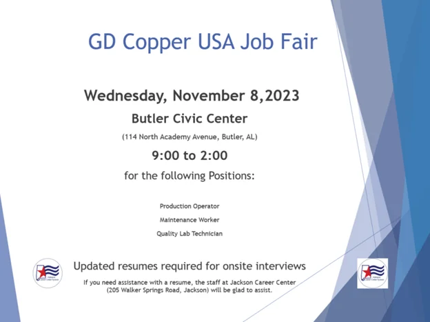 • The Jackson Career Center to Host Job Fair for GD Copper in the Clarke County/Jackson Area