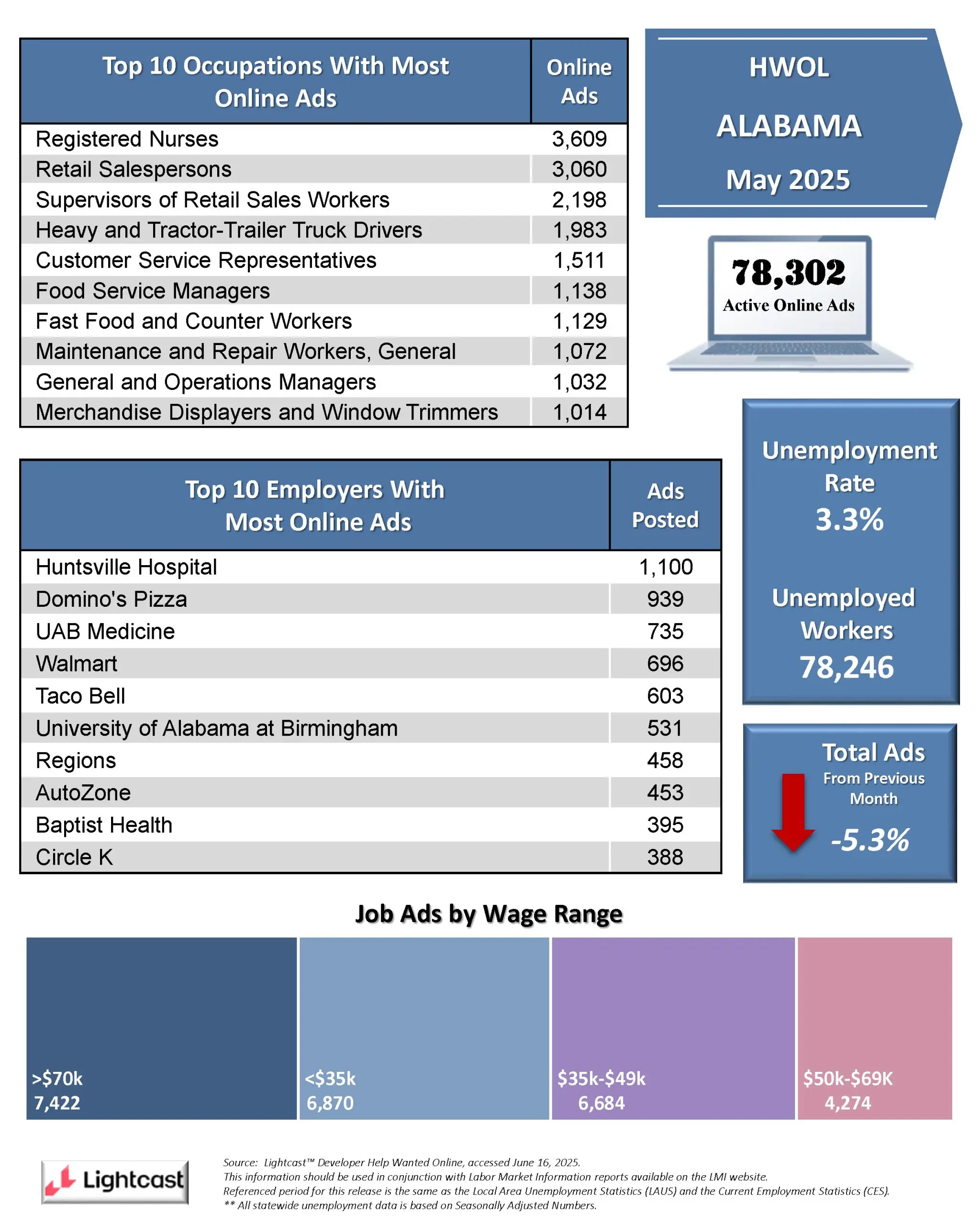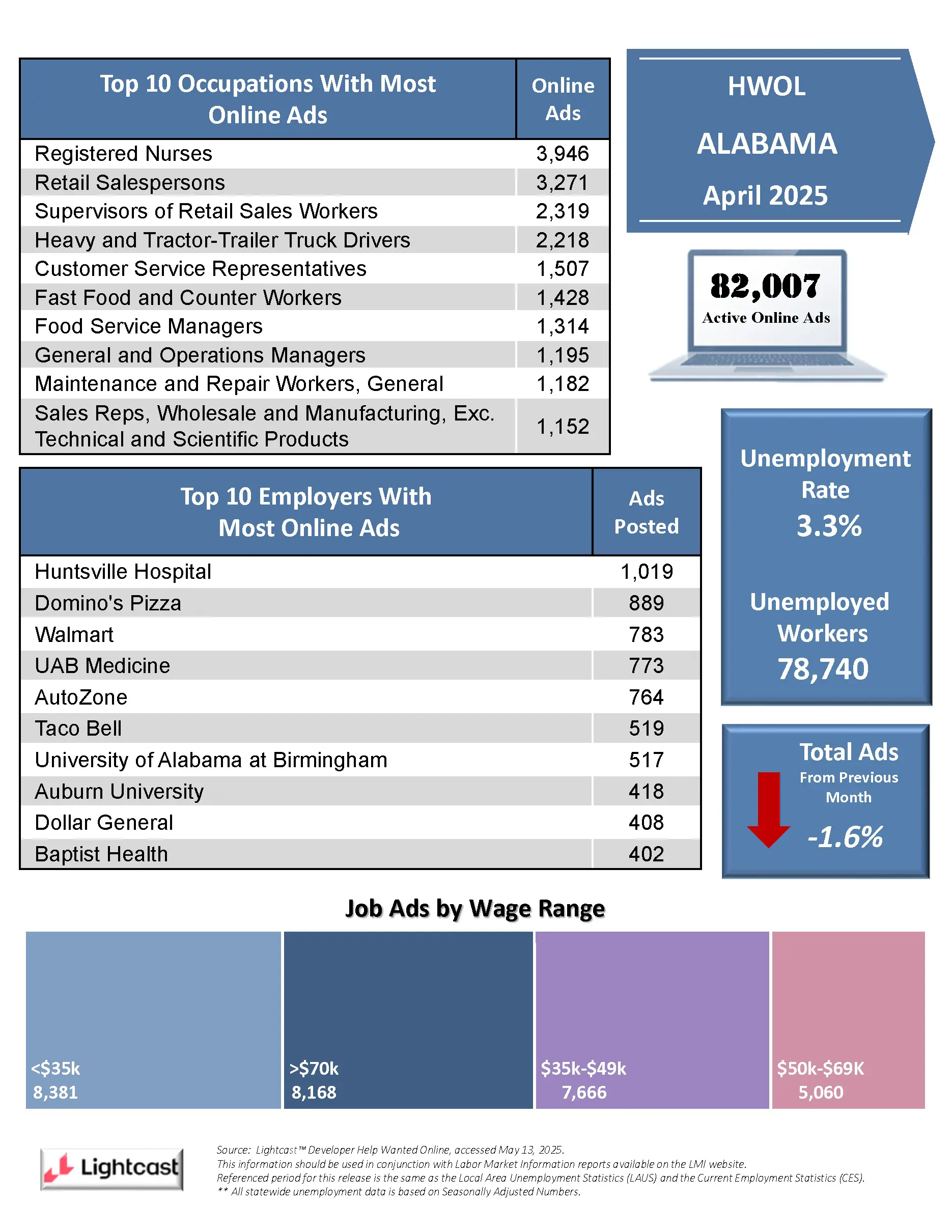 • Registered Nurses, Retail Salespersons, and Supervisors of Retail Sales Workers, are the Top Jobs in MAY