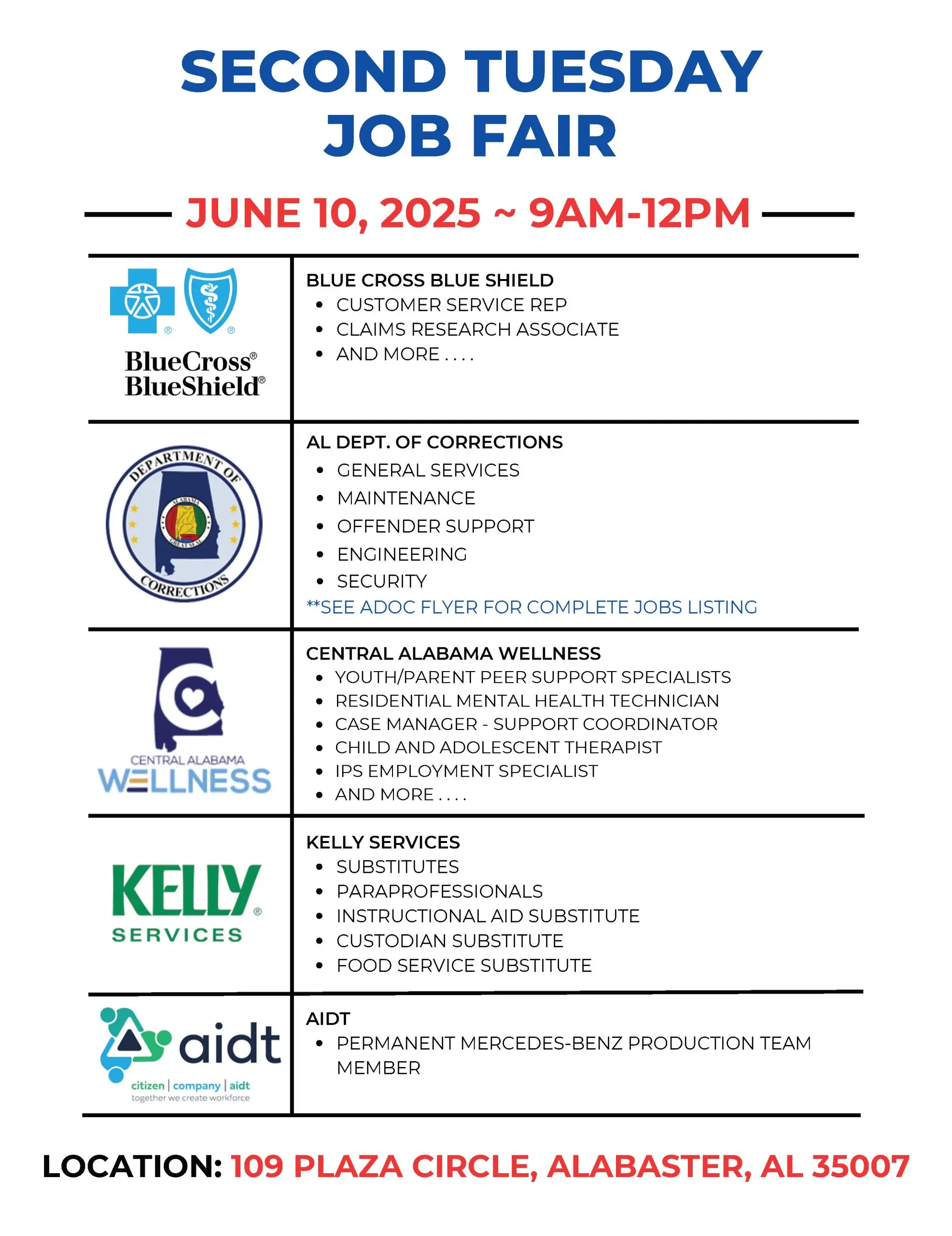 • The Alabaster Career Center is Hosting a “Second Tuesday Job Fair”