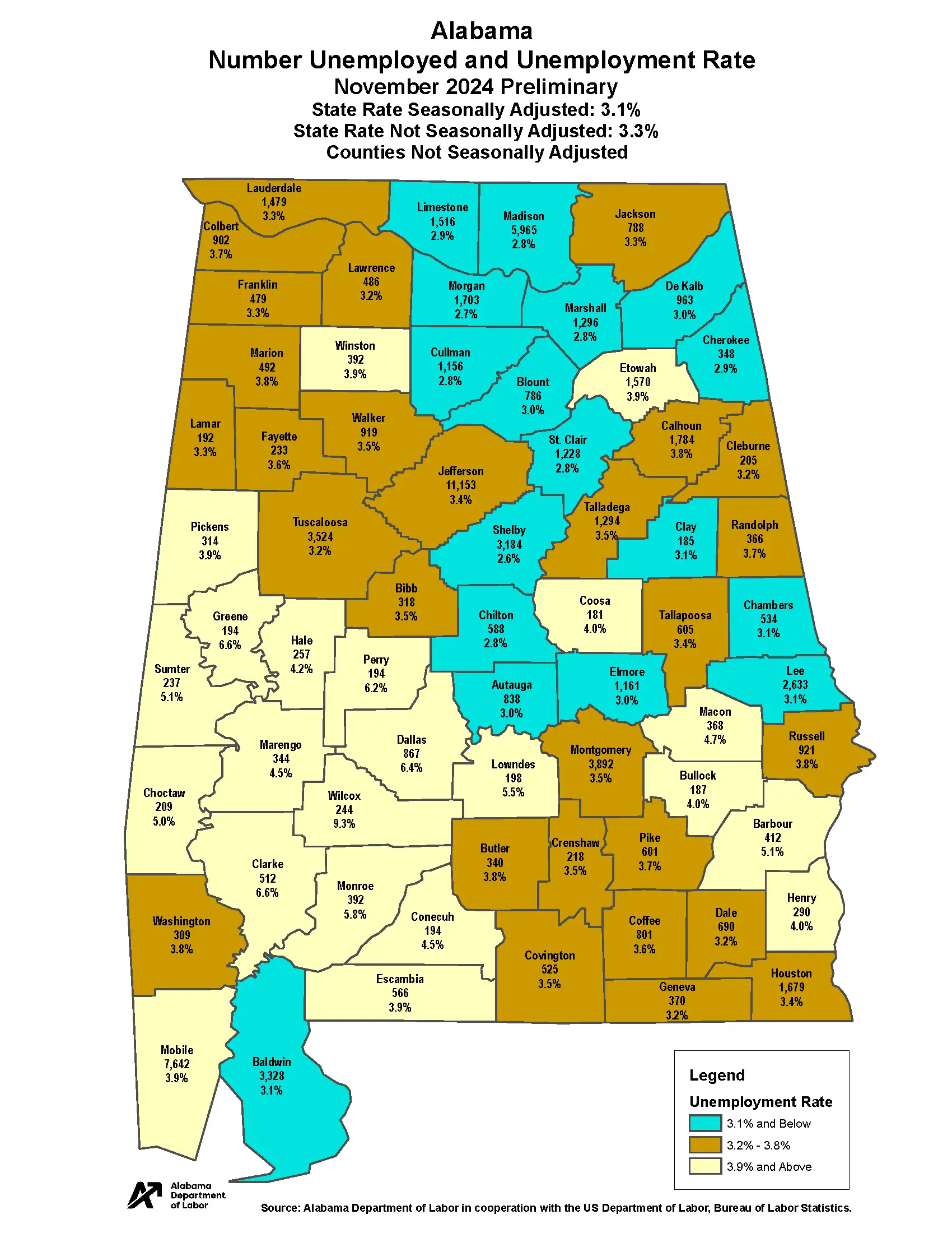 • Alabama’s November Labor Force Participation Rate Remains Unchanged